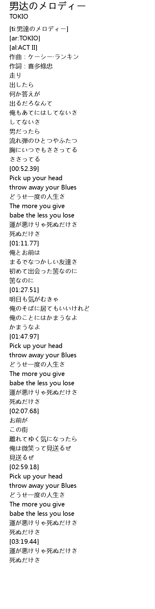 | [03:11.73] | 運が悪けりゃ死ぬだけさ |