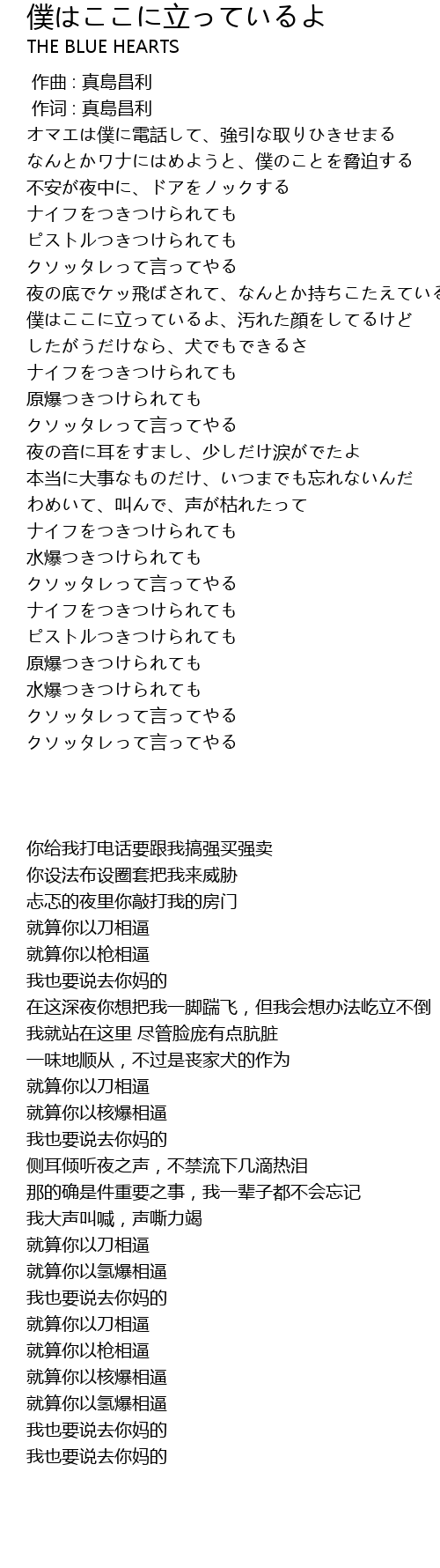 | [00:01.00] | 作词 : 真島昌利 |
