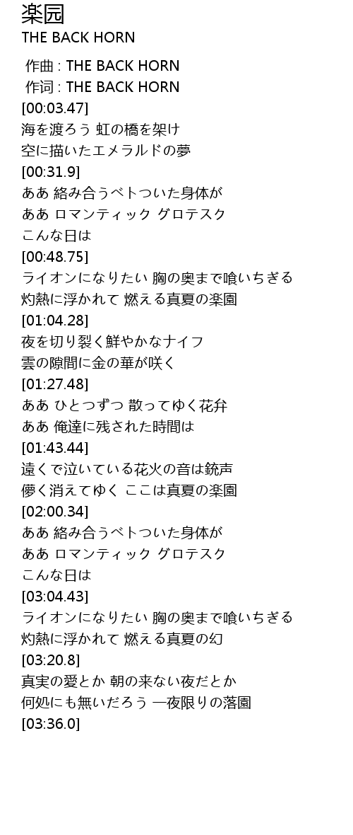 | [00:00.00] | 作曲 : THE BACK HORN |