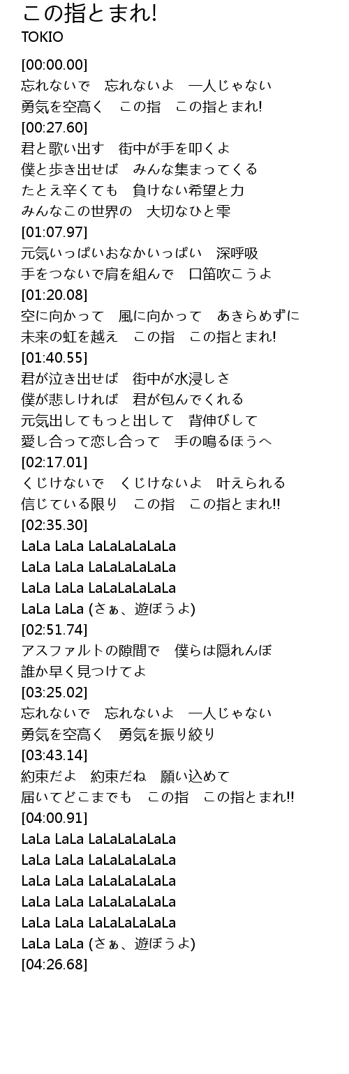 | [03:52.44] | 届いてどこまでも この指 この指とまれ!! |