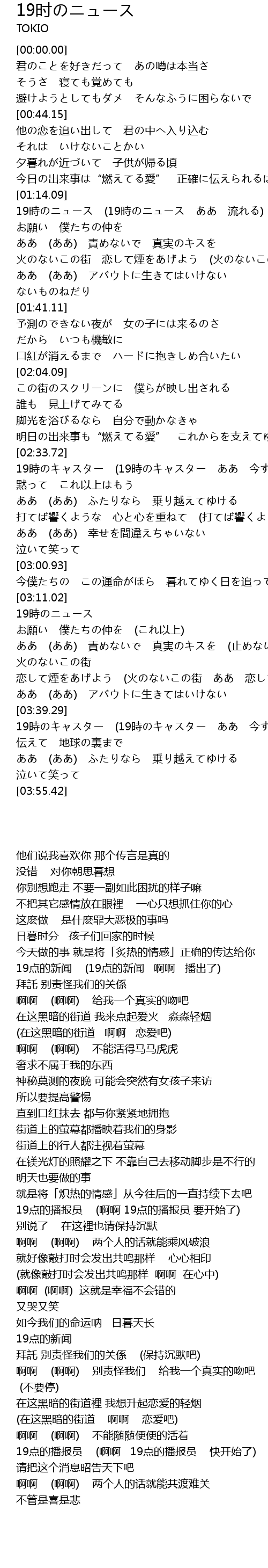 | [01:14.38] | 19時のニュース (19時のニュース ああ 流れる) |
