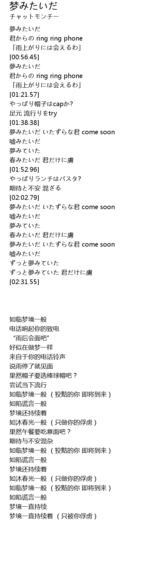 夢みたいだ いたずらな君 come soon |