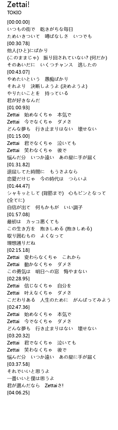 | [01:05.73] | Zettai jīn |