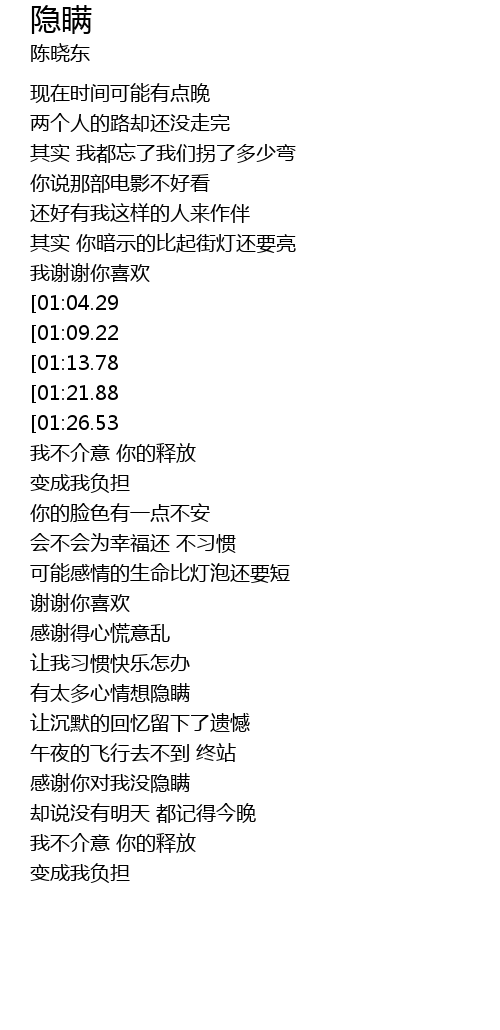 | [02:38.68][01:21.88] | 感谢你对我没隐瞒 |