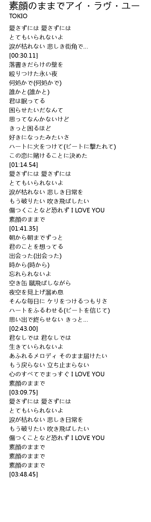 | [03:00.59] | 心のすべてでまっすぐ I LOVE YOU |