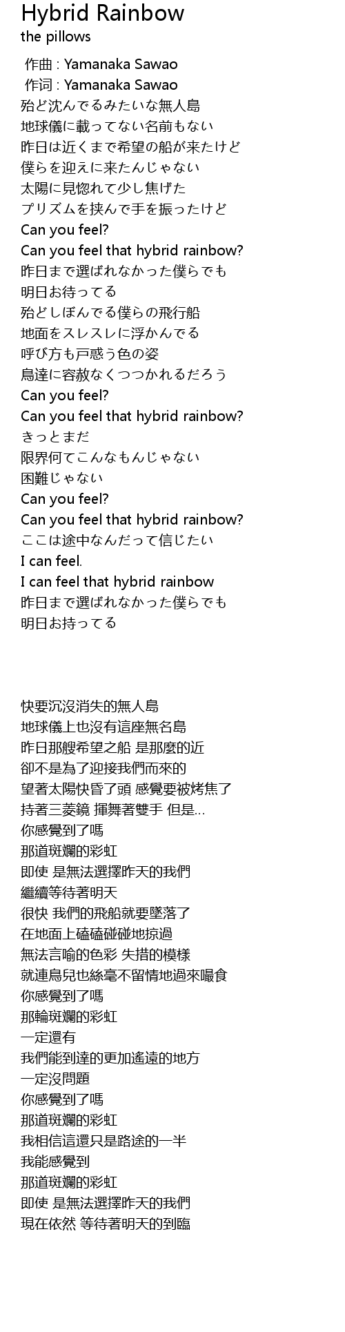 | [03:31.68] | I can feel that hybrid rainbow |