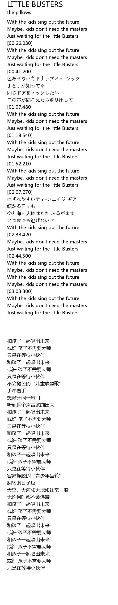 | [02:59.530] | Maybe, kids don' t need the masters |
