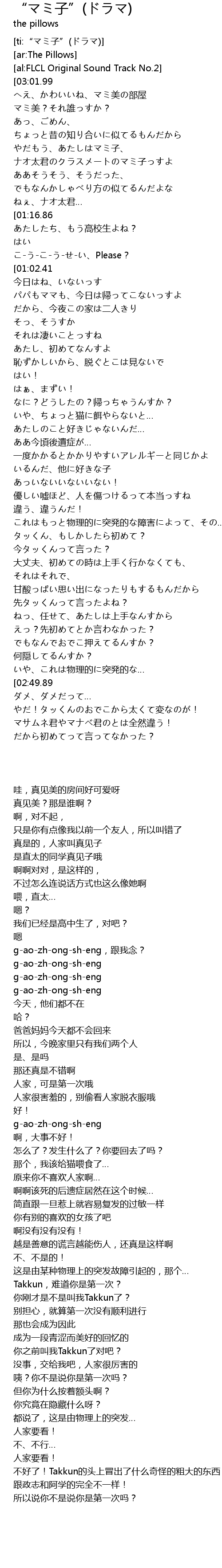 | [00:18.29] | へえ、かわいいね、マミ美の部屋 |