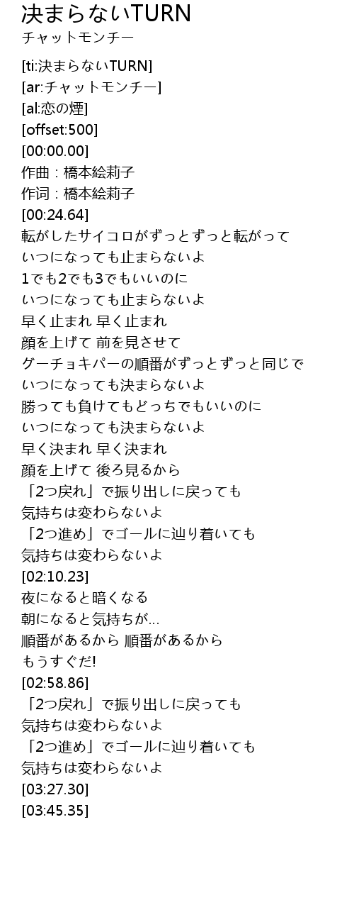 | [ti:決まらないTURN] | |