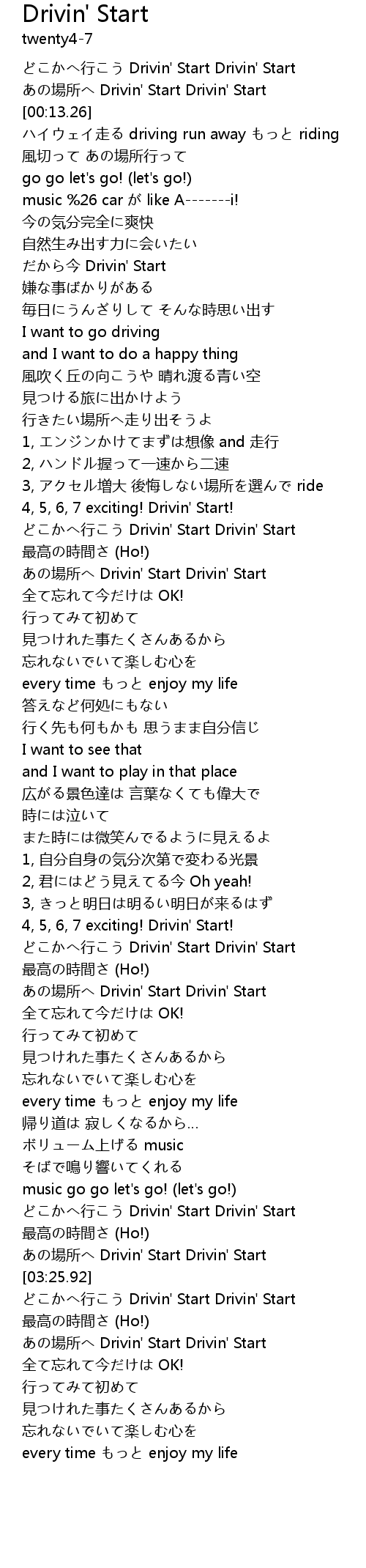 | [02:25.13] | 4, 5, 6, 7 exciting! Drivin' Start! |