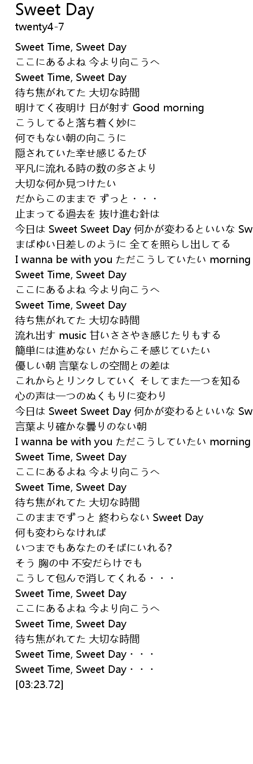 | [01:47.49] | 今日は Sweet Sweet Day 何かが変わるといいな Sweet Day |