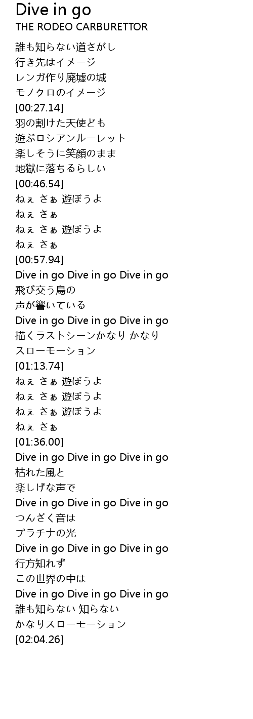 | [01:56.75] | Dive in go Dive in go Dive in go |