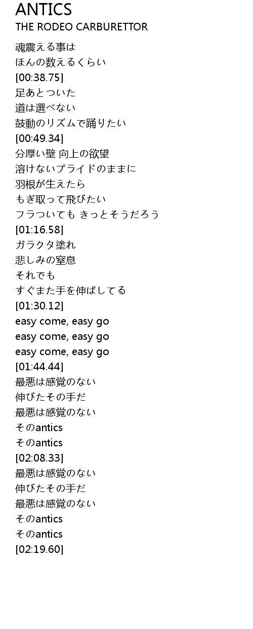 | [02:16.75] | antics |