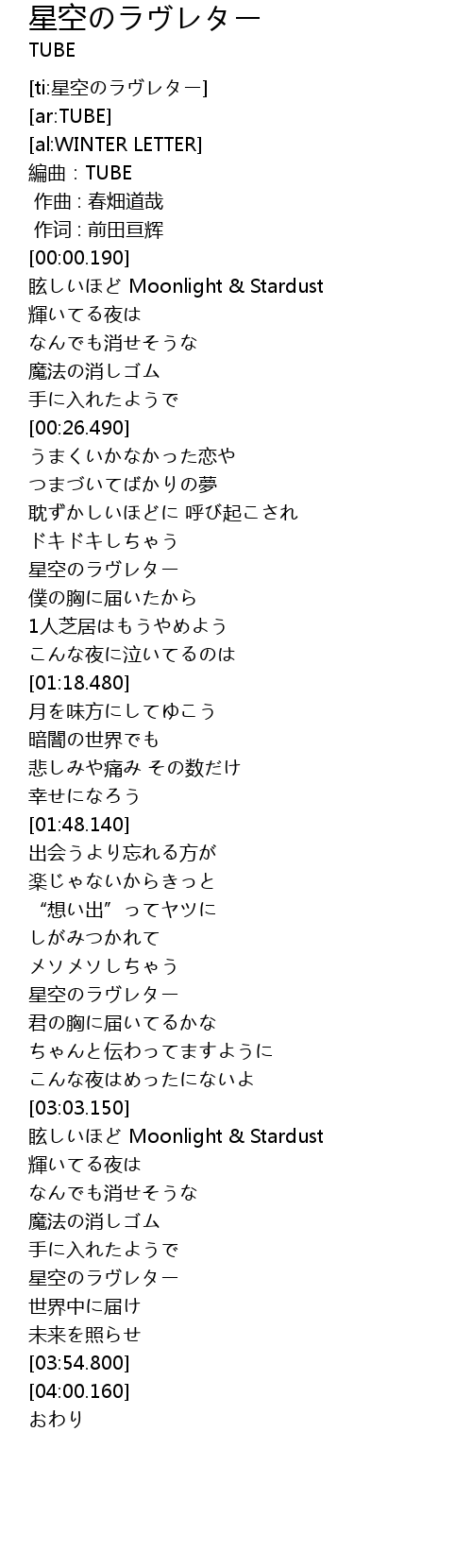 | [03:04.590] | 眩しいほど Moonlight & Stardust |