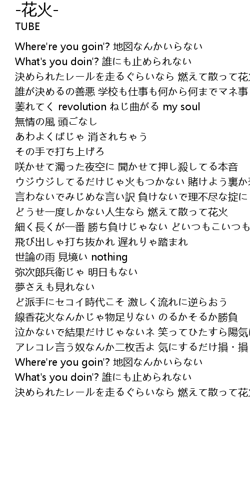 | 決められたレールを走るぐらいなら 燃えて散って花火 |