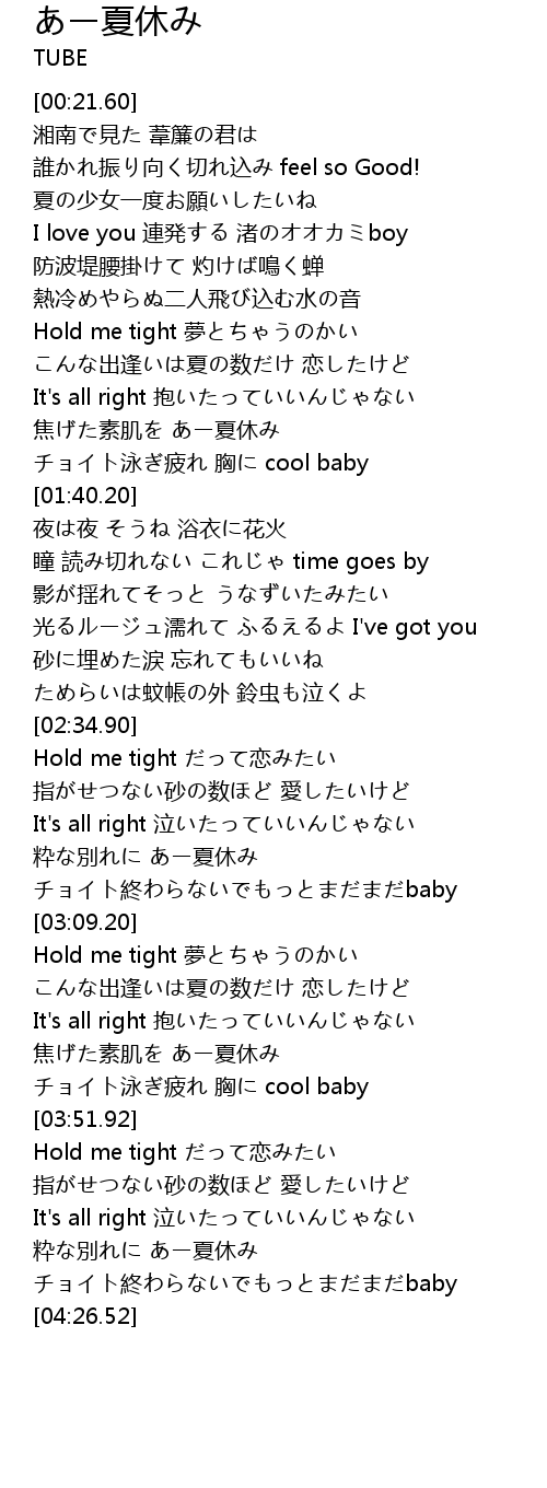 | [01:24.58] | 焦げた素肌を あー夏休み |