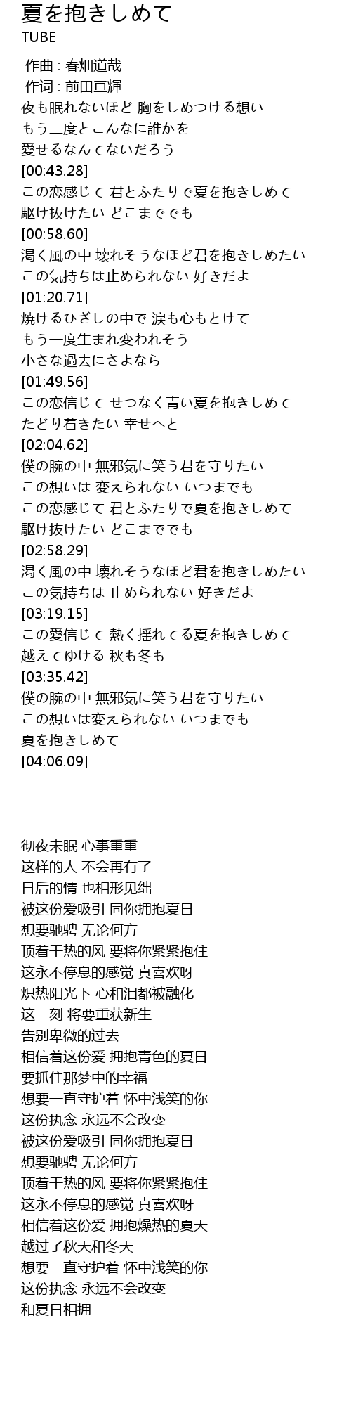| [03:56.65] | 夏を抱きしめて |