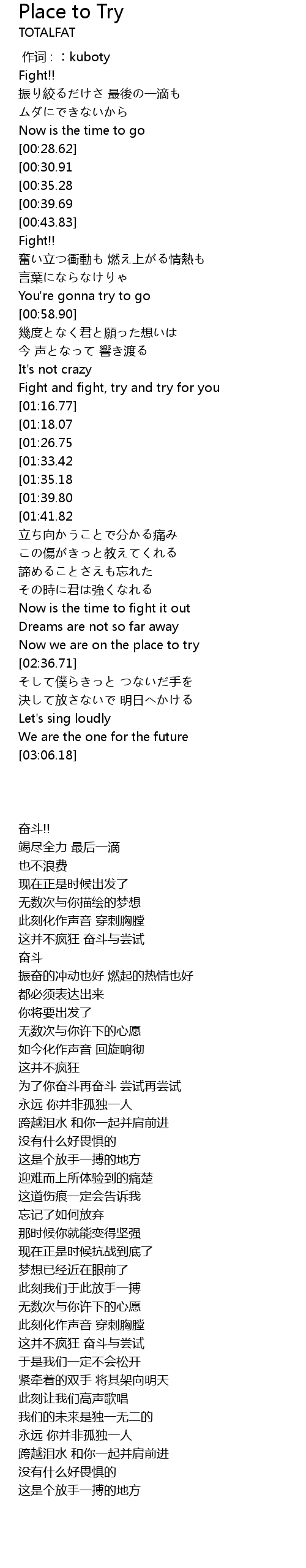 | [03:28.49][01:39.80] | This is the place to try |
