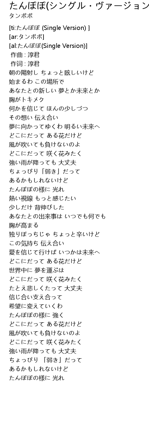 | Song | たんぽぽ(シングル・ヴァージョン) |