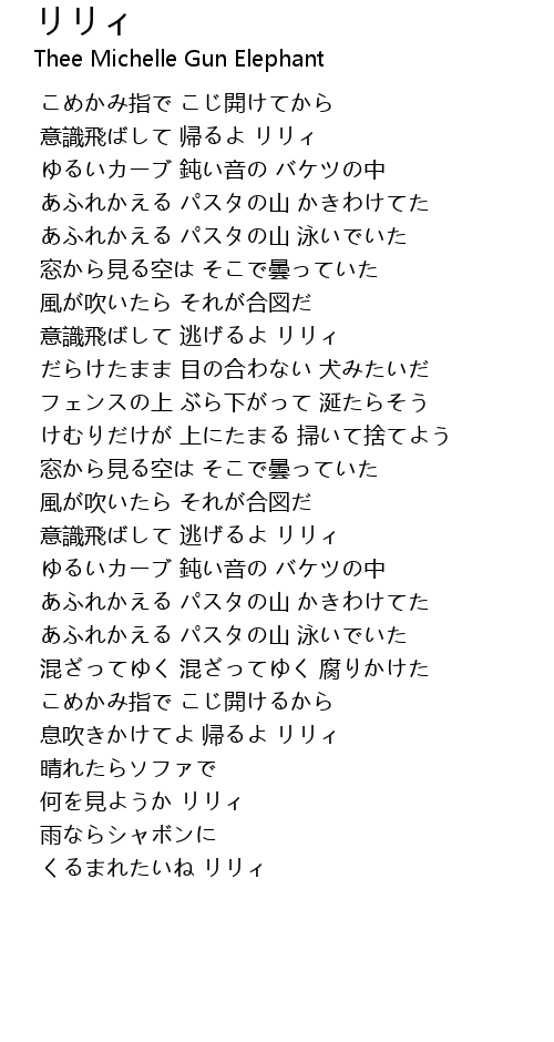 | [00:09.403] | 意識飛ばして 帰るよ リリィ |