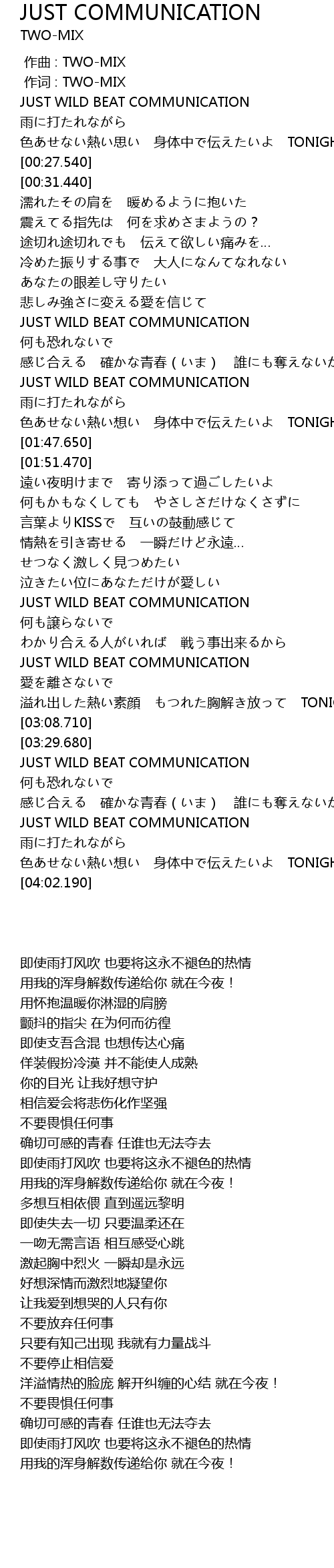 | [03:31.680] | JUST WILD BEAT COMMUNICATION |