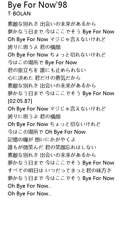 | [00:37.38] | Oh Bye For Now yan |