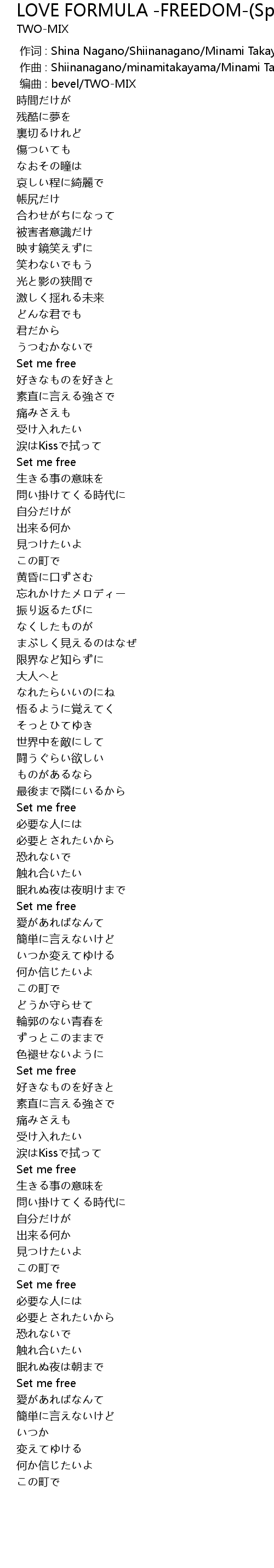 | Song | LOVE FORMULA -FREEDOM-(Sphere Trance Mix) |