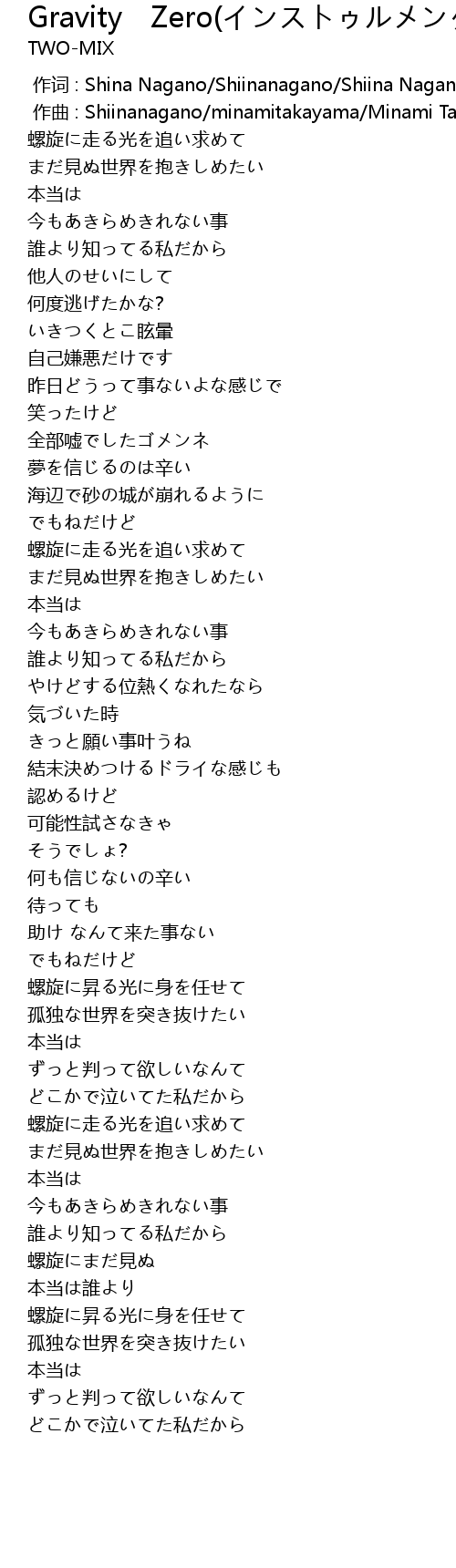 | [00:00.000] | zuo ci : Shina Nagano Shiinanagano Shiina Nagano Minami Takayama |