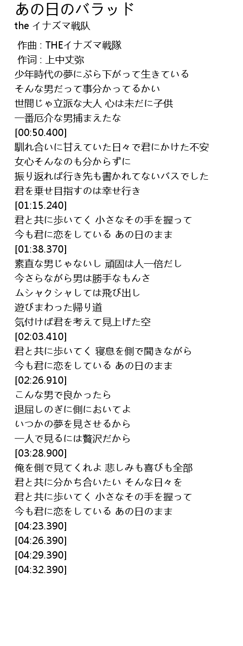 | [04:11.800] | 今も君に恋をしている あの日のまま |
