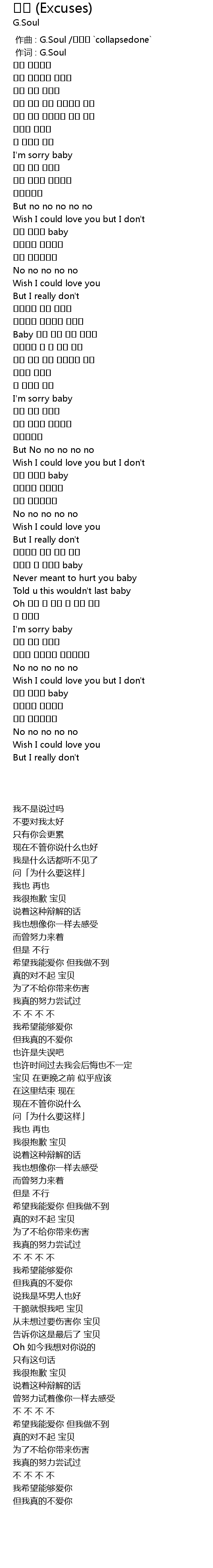 | [00:00.00] | 作曲 : G.Soul /이우민 `collapsedone` |