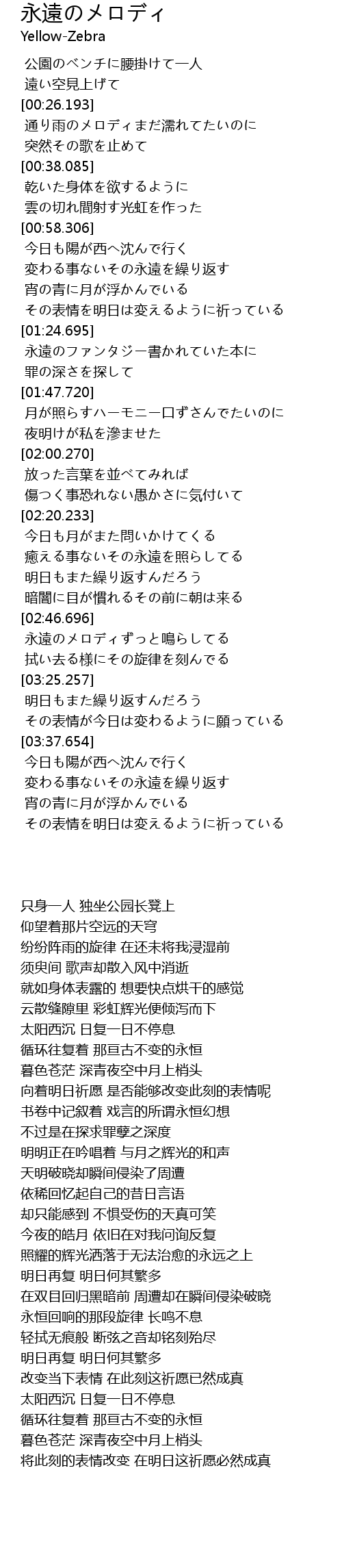 | [03:12.956] | 永遠のメロディずっと鳴らしてる |