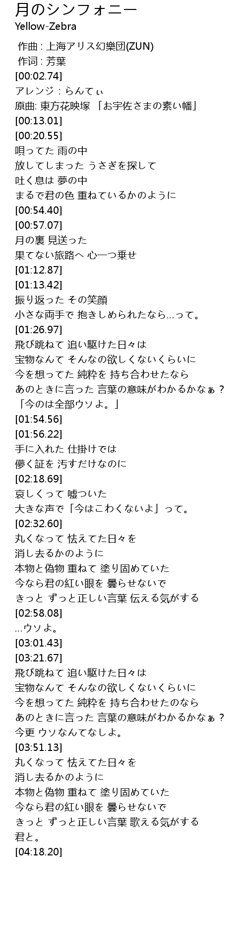 | [00:00.00] | 作曲 : 上海アリス幻樂団(ZUN) |