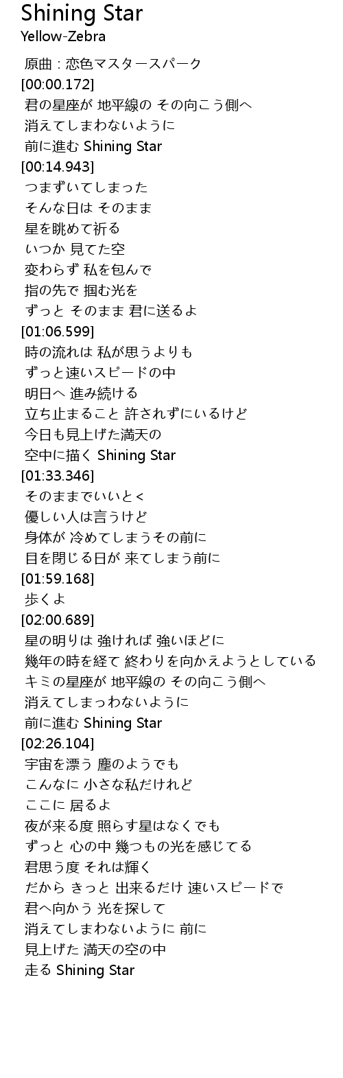| [02:23.057] | 前に進む Shining Star |