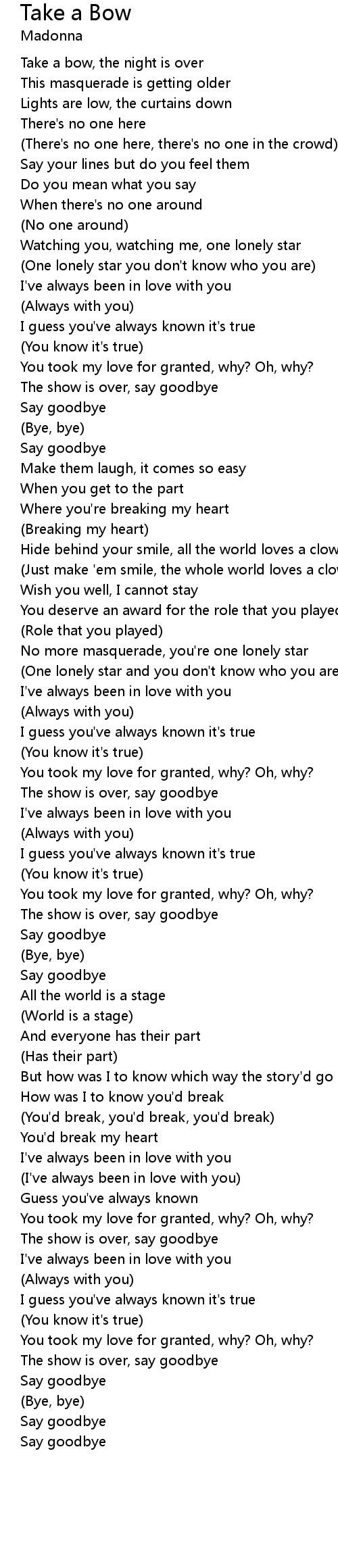 Take a bow, the night is over |
