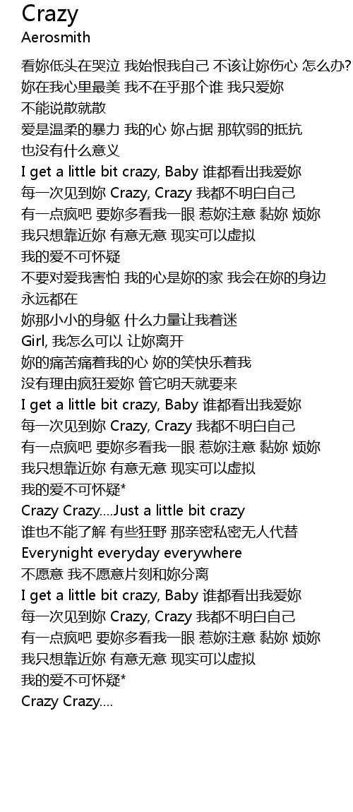 | [02:57.59] | Crazy Crazy.... Just a little bit crazy |