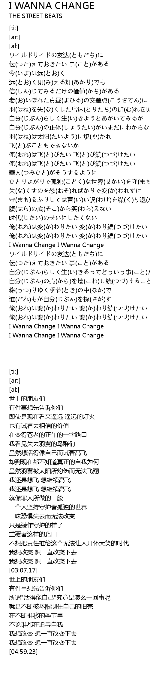 | [02:51.63] | 俺(おれ)は変(か)わりたい 変(か)わり続(つづ)けたい |