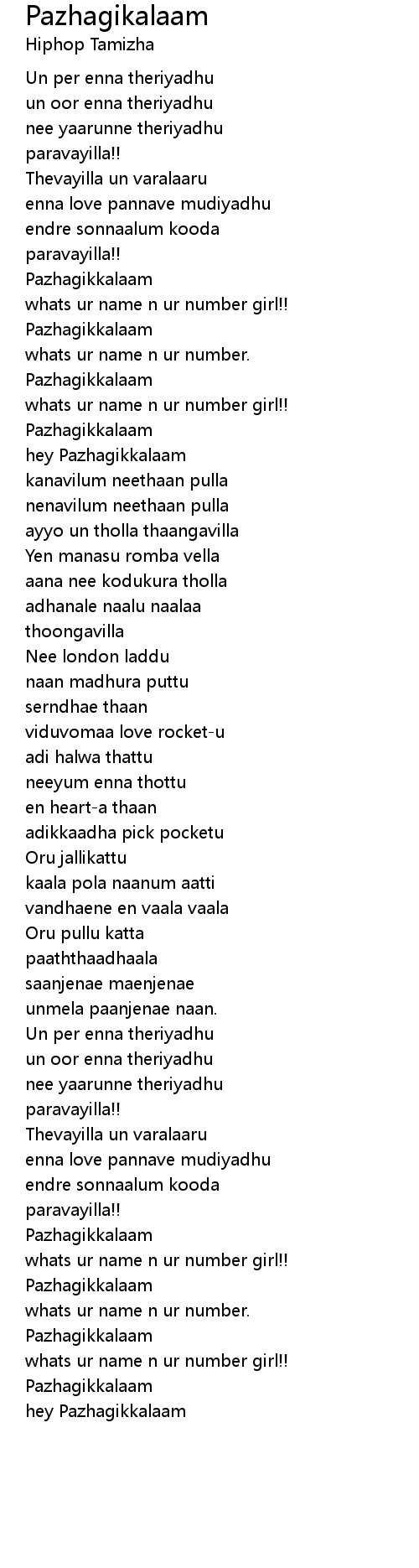 hey Pazhagikkalaam |