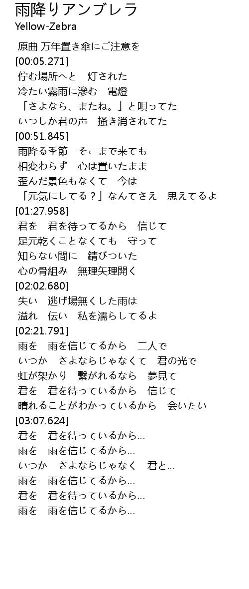 | [00:00.000] | 原曲 万年置き傘にご注意を |