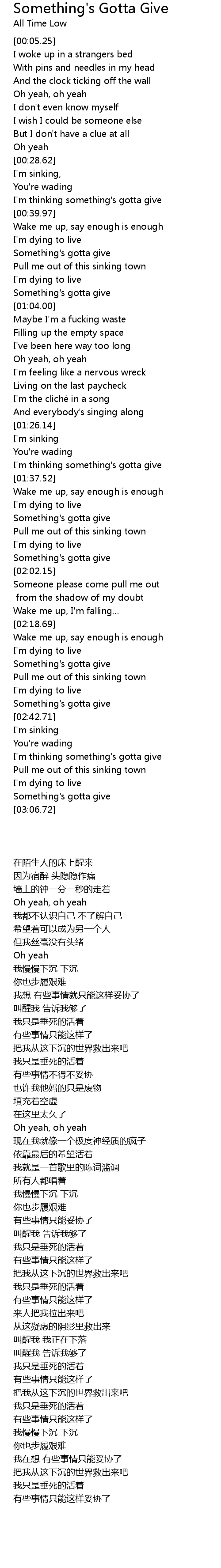 | [03:03.91] | Something's gotta give |