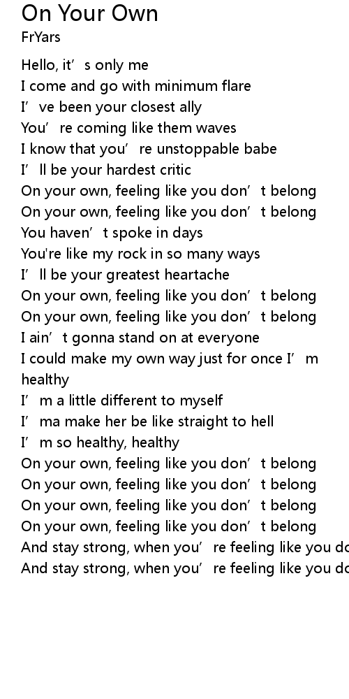 | On your own, feeling like you don' t belong | |