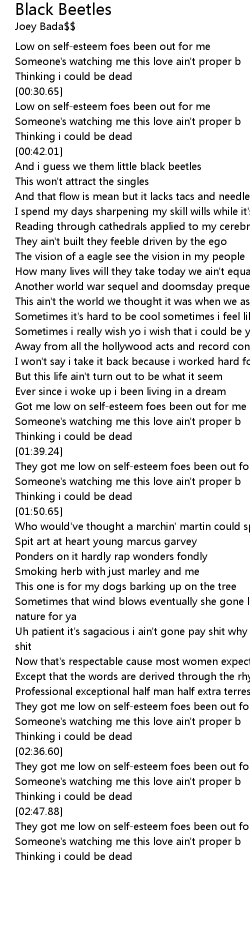 They got me low on self-esteem foes been out for me |