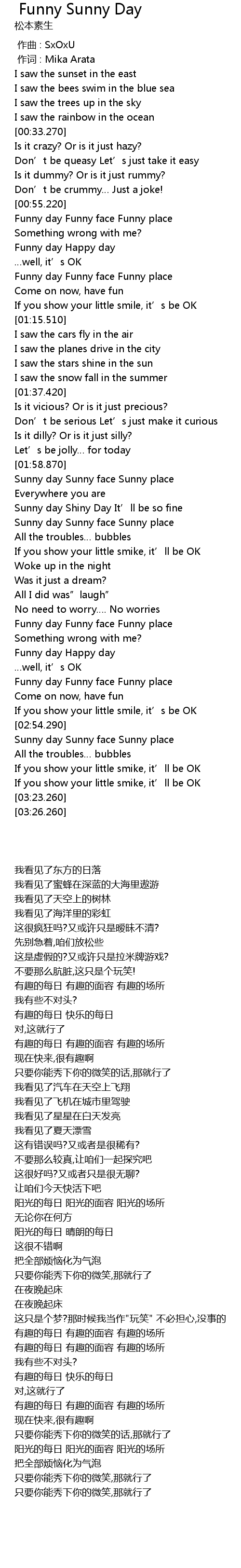 | [01:59.890] | Sunny day Sunny face Sunny place |