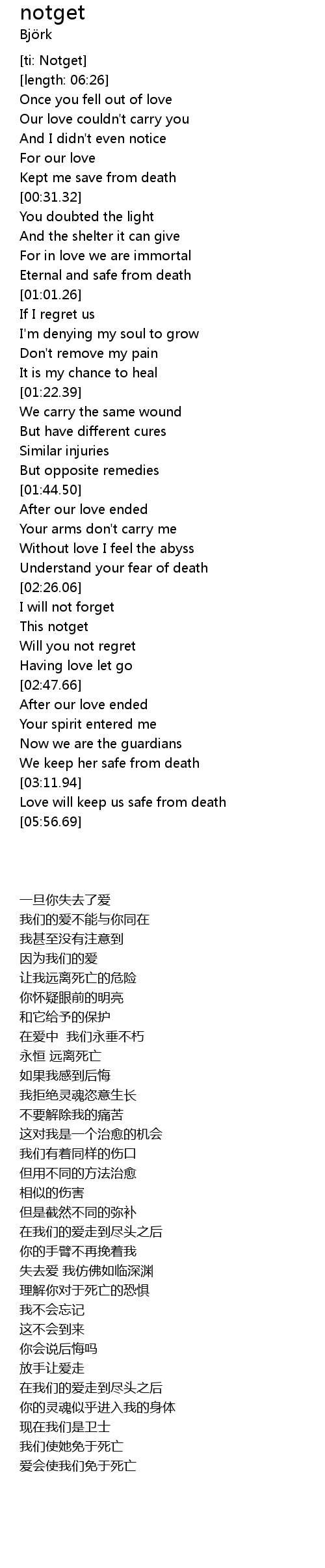 | [03:20.02] | Love will keep us safe from death |