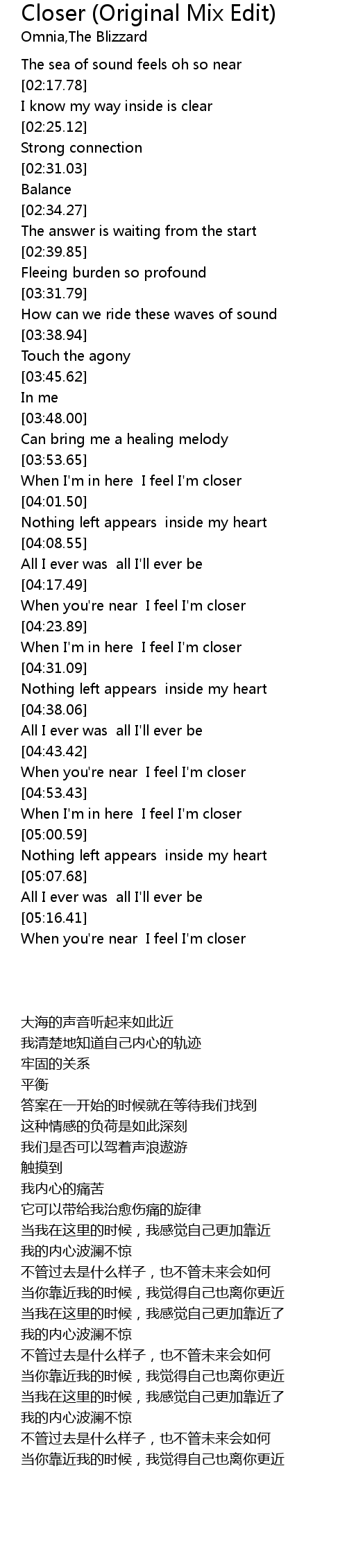 When you're near I feel I'm closer |