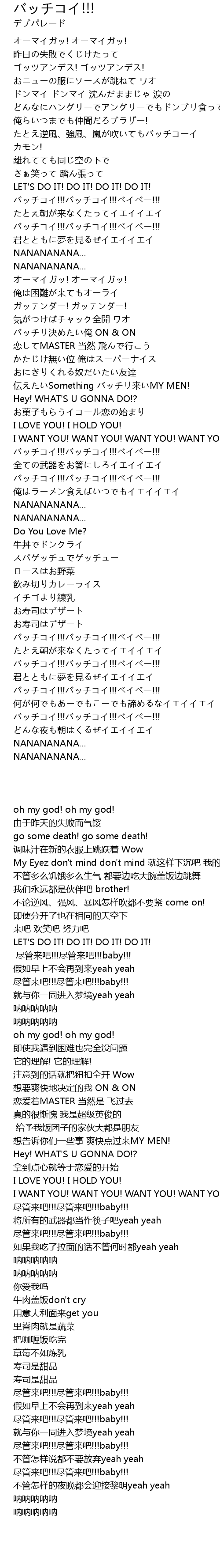 | [00:46.510] | バッチコイ!!!バッチコイ!!!ベイベー!!! |