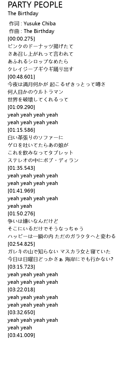 | [00:00.000] | 作词 : Yusuke Chiba |