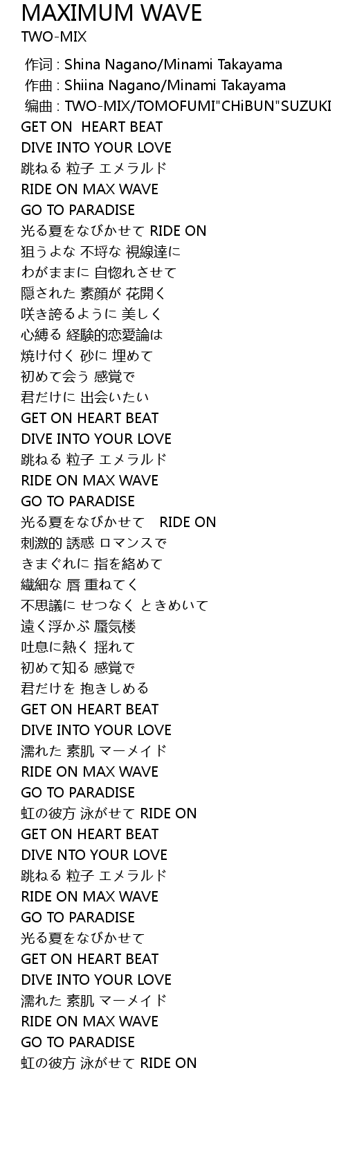 | [00:01.000] | zuo qu : Shiina Nagano Minami Takayama |