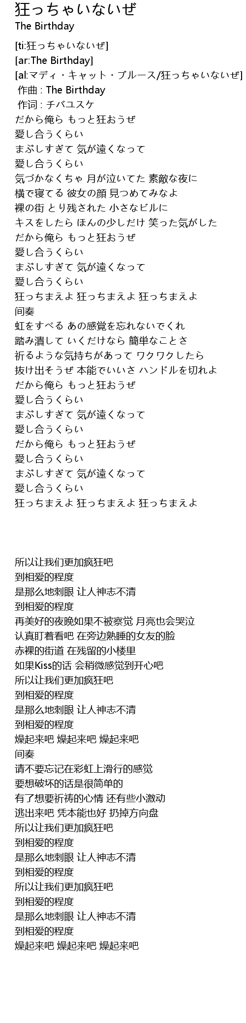 | [02:45.998] | だから俺ら もっと狂おうぜ |