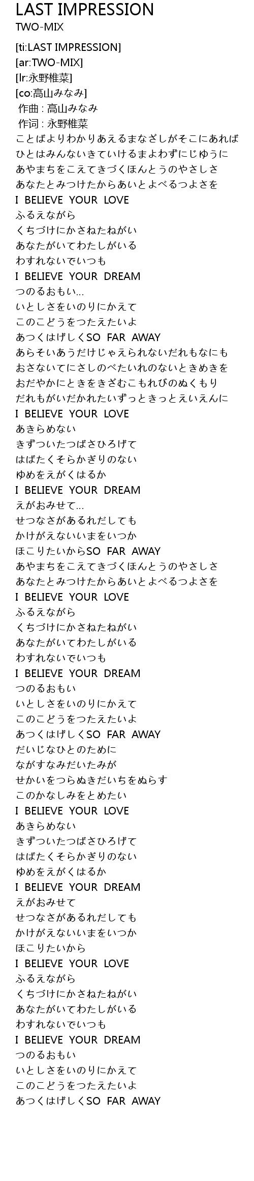 | [02:51.74] | I BELIEVE YOUR DREAM |