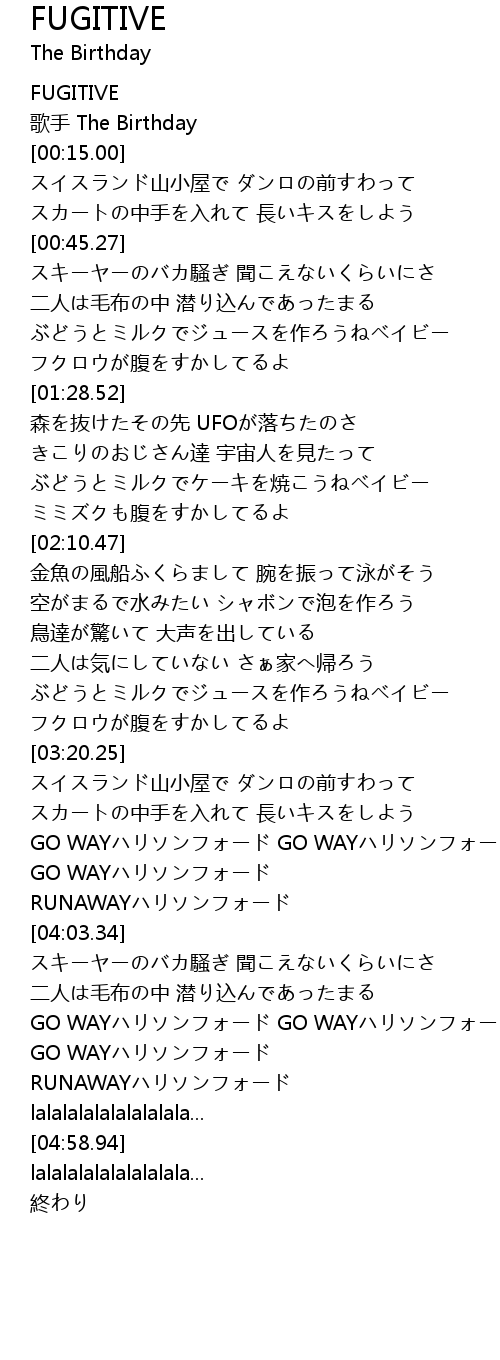 | [00:00.00] | FUGITIVE |